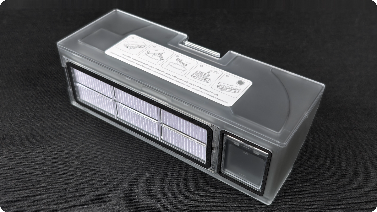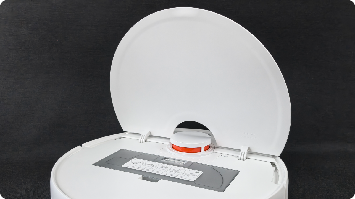 Станция не только заряжает, но и автоматически опорожняет контейнер, запечатывая мусор в мешок — в среднем его хватает на несколько недель, в зависимости от площади и частоты уборок.