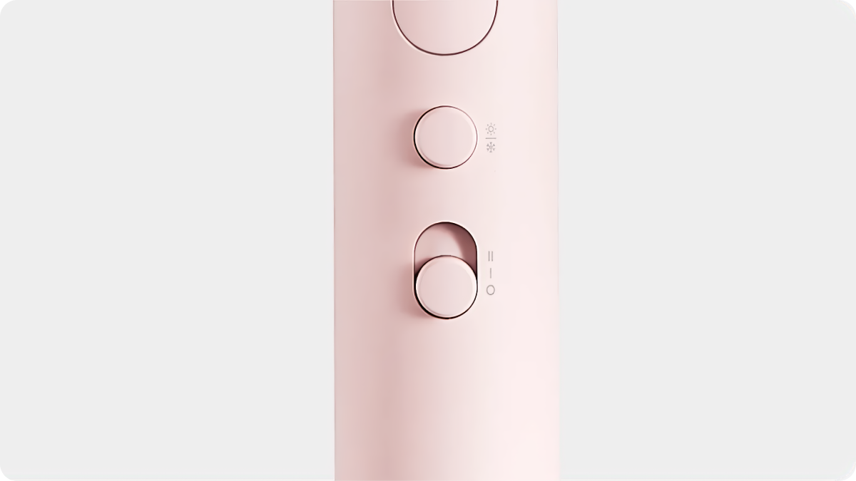 Если H101 можно назвать феном «на каждый день», то H300 — уже шаг в сторону более профессионального инструмента. Он всё такой же компактный и аккуратный, но ощущается надёжнее: корпус плотнее, пластик матовый, с лёгким шелковистым эффектом. В руке лежит уверенно, а баланс веса настолько ровный, что фен почти не чувствуешь — будто он продолжение руки. Шум мягкий, без раздражающего свиста, а поток воздуха ощутимо мощнее, чем у H101, и сразу даёт понять, что перед тобой техника посерьёзнее.