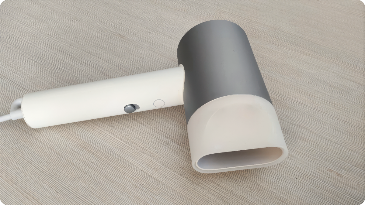 С H500 Xiaomi впервые заигрывает с премиум-классом. Он выглядит по-настоящему дорого — матовый корпус с металлическими акцентами, плавные линии, никаких скрипов или люфтов. В руке фен ощущается как инструмент, созданный для салонной работы: чуть тяжелее, но с идеальной развесовкой, так что усталости нет. Никаких перегретых поверхностей — пластик остаётся прохладным даже после длительной сушки.
