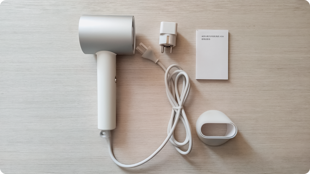 Первое впечатление от H101 — это тот случай, когда берёшь в руки вещь и сразу понимаешь, зачем она создана. Никакой показной «премиальности» или вычурности — просто удобный, аккуратный фен, сделанный с умом. Корпус матовый, приятный на ощупь, не скользит даже в влажной руке. Xiaomi явно продумала эргономику: ручка мягко переходит в корпус, без острых углов и грубых швов, а баланс веса смещён ближе к рукояти, чтобы фен не «клюнул носом» и не тянул кисть вперёд.