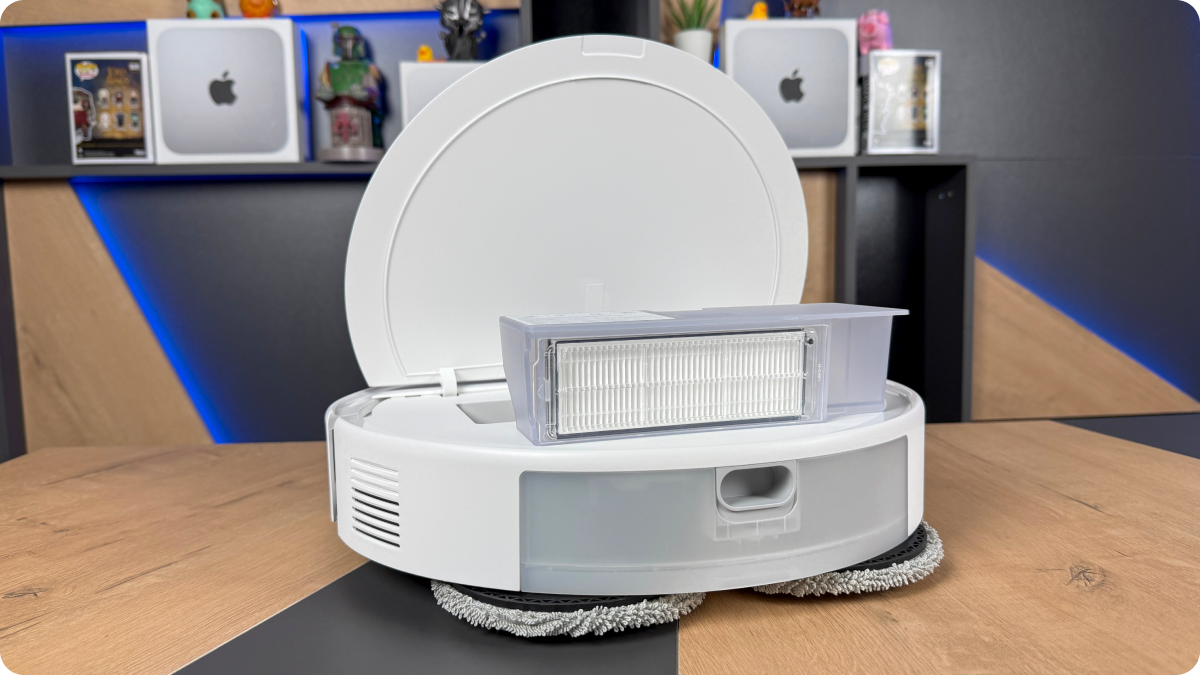 Модель не имеет станции самоочистки, зато контейнер легко извлекается и моется под краном. Влажная уборка не заменяет полноценное мытьё пола, но для ежедневного освежения покрытия её возможностей достаточно. Уборка проходит стабильно — робот не застревает, аккуратно объезжает ножки мебели и уверенно преодолевает пороги до 20 мм.