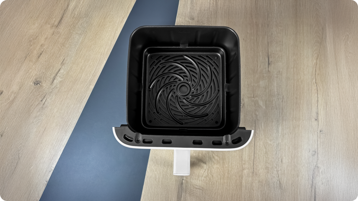 В работе аэрогриль показывает себя уверенно. Картофель фри выходит с хрустящей корочкой без масла, куриные крылышки — сочные и ароматные, овощи — с лёгким обжаренным краем, но не пересушенные. Выпечка тоже удаётся: маффины и запеканки поднимаются равномерно, не пригорают и сохраняют мягкость.