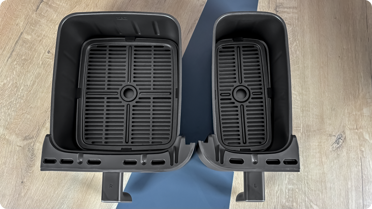 В остальном Xiaomi Dual Zone Air Fryer 10L оставляет отличное впечатление. Он не требует предварительного разогрева, быстро выходит на нужную температуру и стабильно держит её на протяжении всего процесса. За счёт равномерной циркуляции воздуха блюда получаются одинаково прожаренными и с аппетитной текстурой. Управление интуитивное, а интерфейс — понятный даже тем, кто впервые сталкивается с подобной техникой.