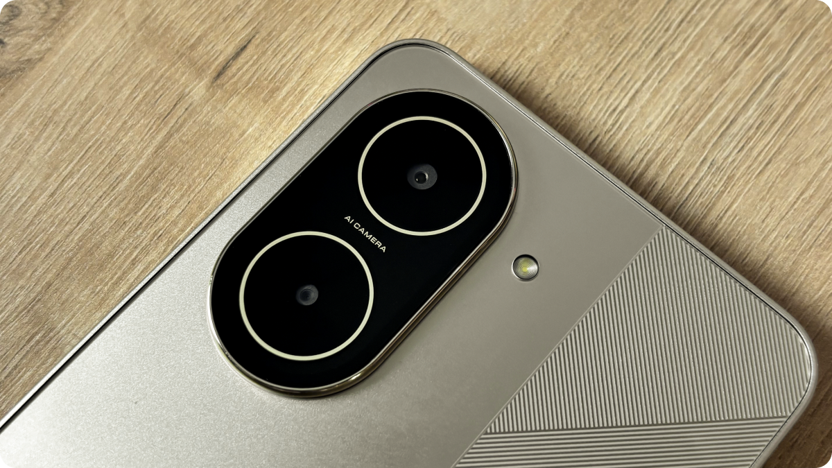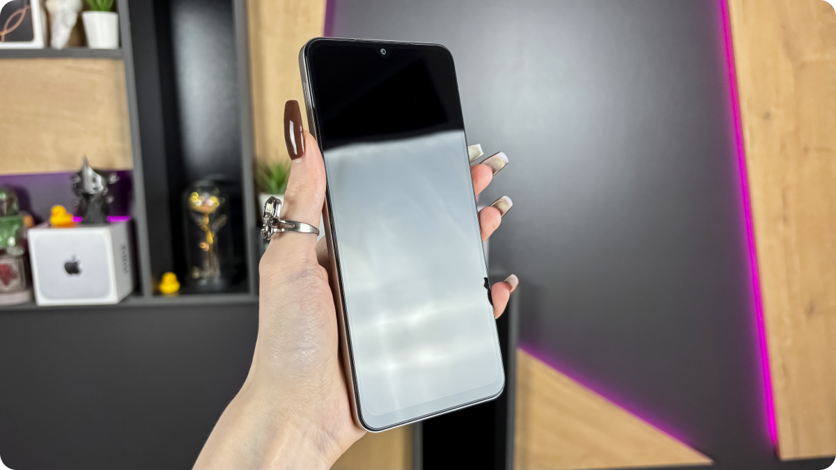 Внешне POCO C71 прост, но аккуратен. Корпус крупный, но не громоздкий — с матовой задней крышкой, аккуратным блоком камеры и сканером отпечатков в кнопке питания. В руке лежит уверенно, хотя одной рукой управлять сложно — это типично для смартфонов с таким экраном. Всё собрано без люфта, ощущается крепко и добротно.