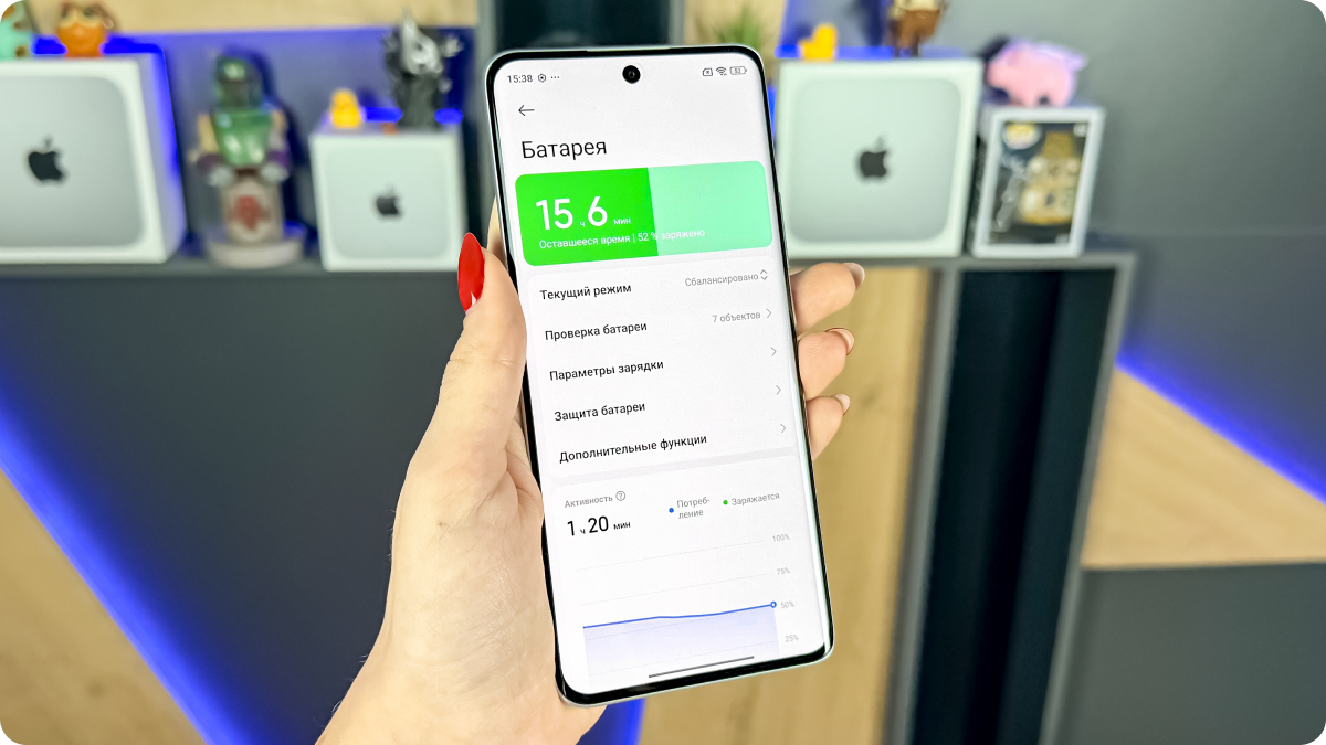 5520 мАч — это хороший запас, который в реальной жизни дает спокойный день работы. Смартфон выдерживает активный сценарий: немного камеры, много мессенджеров, навигация, соцсети, видео — и к вечеру не возникает ощущения, что вы постоянно на грани 10%.