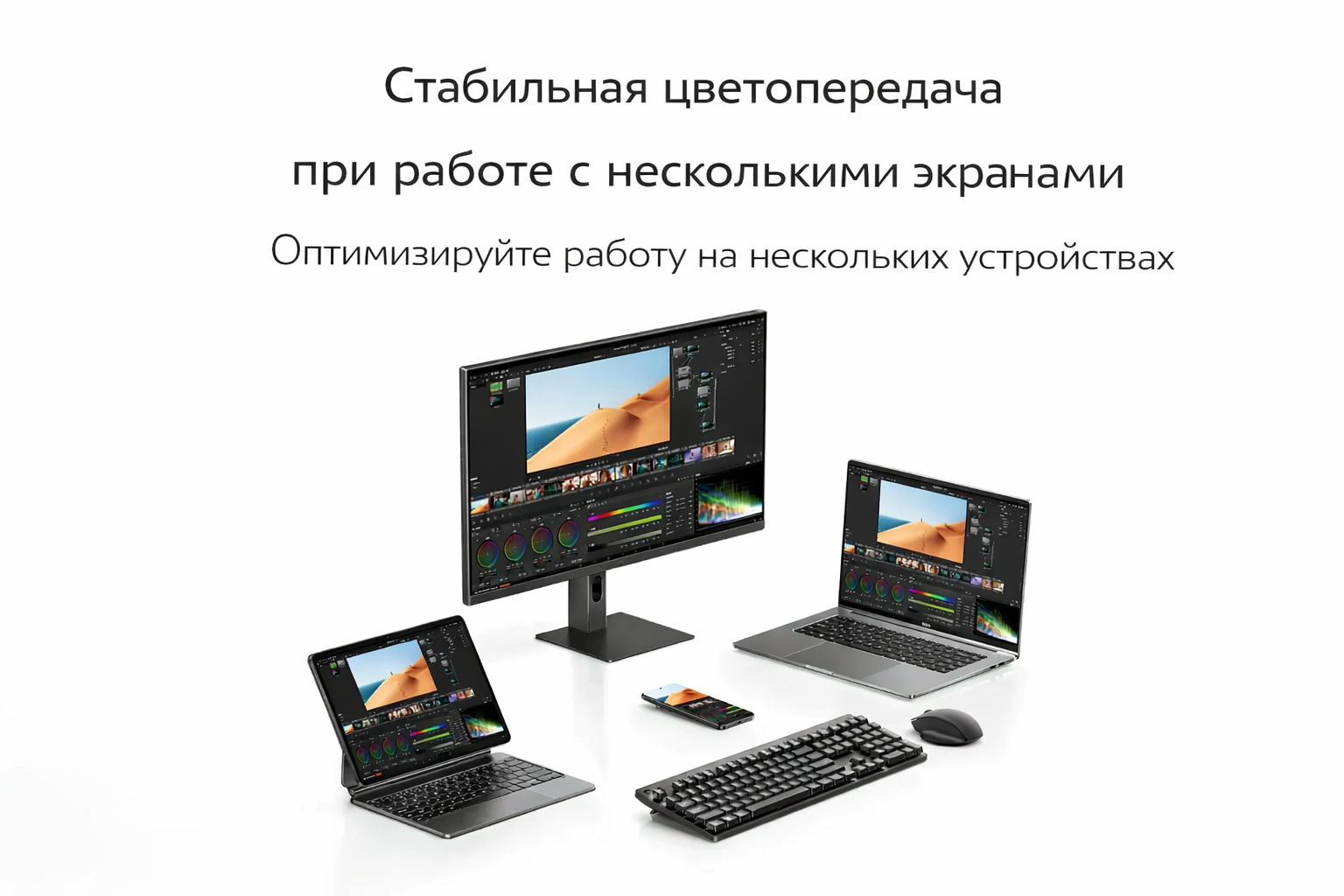 Модель оснащена 27-дюймовой IPS-матрицей с разрешением 2560 × 1440 пикселей. Изображение получается четким и детализированным, а матовое покрытие помогает уменьшить блики. Поддержка HDR и цветовой охват 100% sRGB делают монитор хорошим выбором для работы, просмотра видео и повседневных мультимедийных задач.