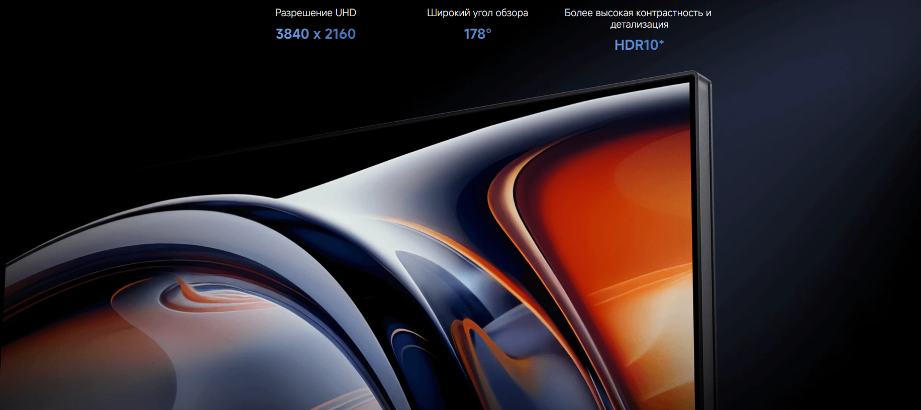 Xiaomi 4K Monitor A27Ui оснащен 27-дюймовым IPS-дисплеем с разрешением 3840×2160, который обеспечивает высокую детализацию изображения. Такая плотность пикселей делает текст максимально четким, а графику — детализированной и насыщенной. Трехсторонний безрамочный корпус выглядит современно и отлично подходит как для домашнего, так и для офисного рабочего места.