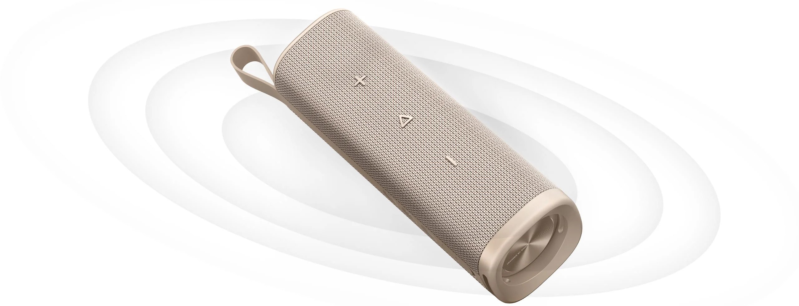 Колонка создаёт удивительно объёмное звучание для своих компактных размеров. Большая площадь сетки помогает раскрыть динамичный и прозрачный звук, а равномерное распределение аудиопотока делает прослушивание комфортным в любой части комнаты или на улице.