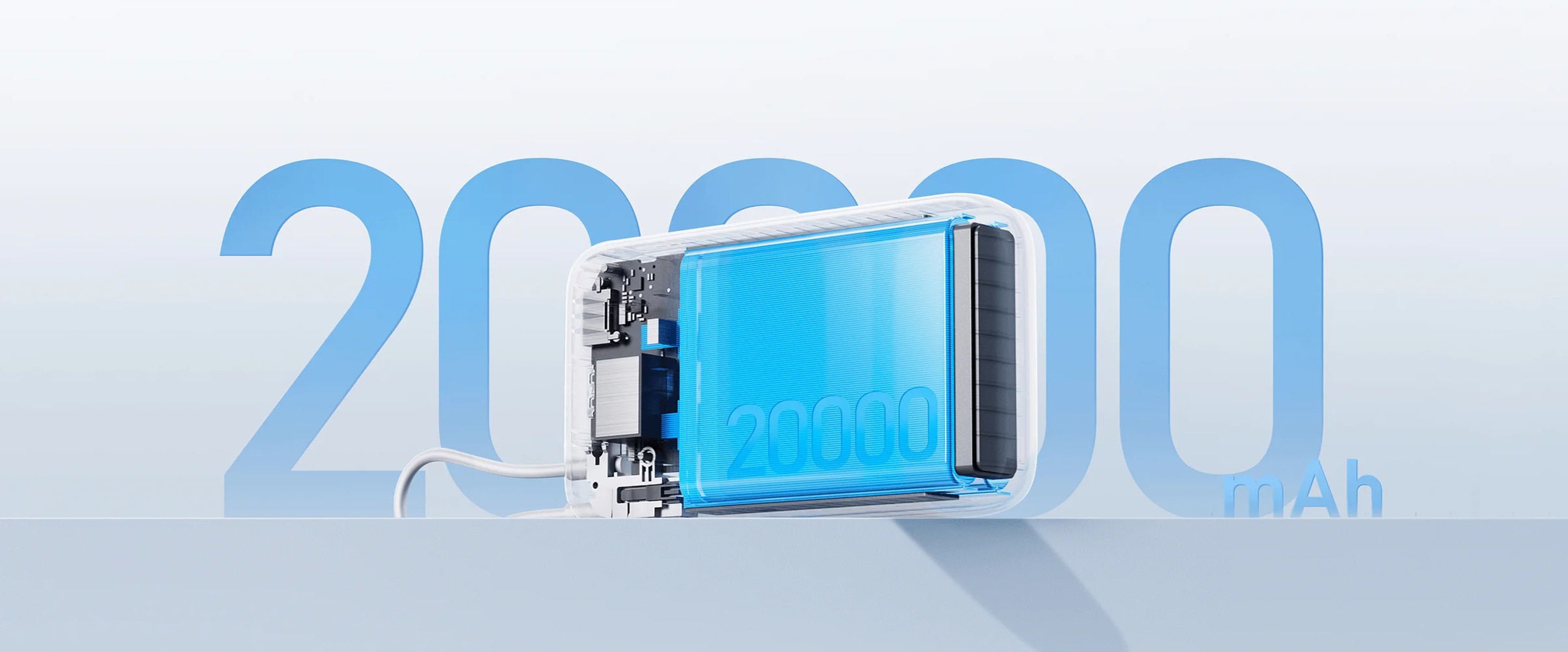 Внутри установлен литий-ионный аккумулятор емкостью 20 000 мАч, рассчитанный на многократную зарядку смартфонов, планшетов и других устройств. Пауэрбанк поддерживает выходные напряжения 5 В, 9 В, 10 В и 12 В, а максимальная мощность достигает 22.5 Вт. Это позволяет быстрее восполнять заряд совместимых гаджетов по сравнению с обычными источниками питания.