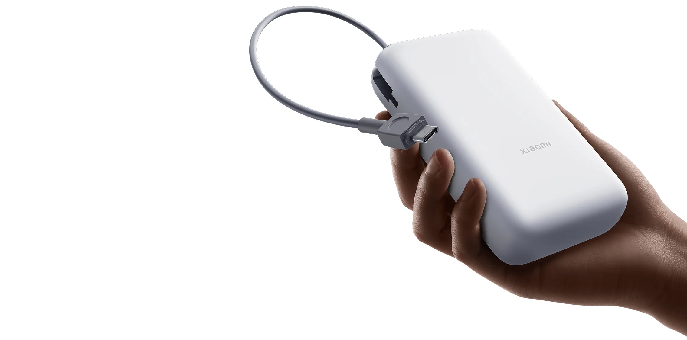 Пауэрбанк оснащён портом USB Type-C и USB-A, а также встроенным кабелем, что позволяет одновременно заряжать до трех устройств. Такое решение удобно в поездках и повседневном использовании, когда нужно подпитать несколько гаджетов без дополнительных аксессуаров. Вход для зарядки самого аккумулятора реализован через USB Type-C.