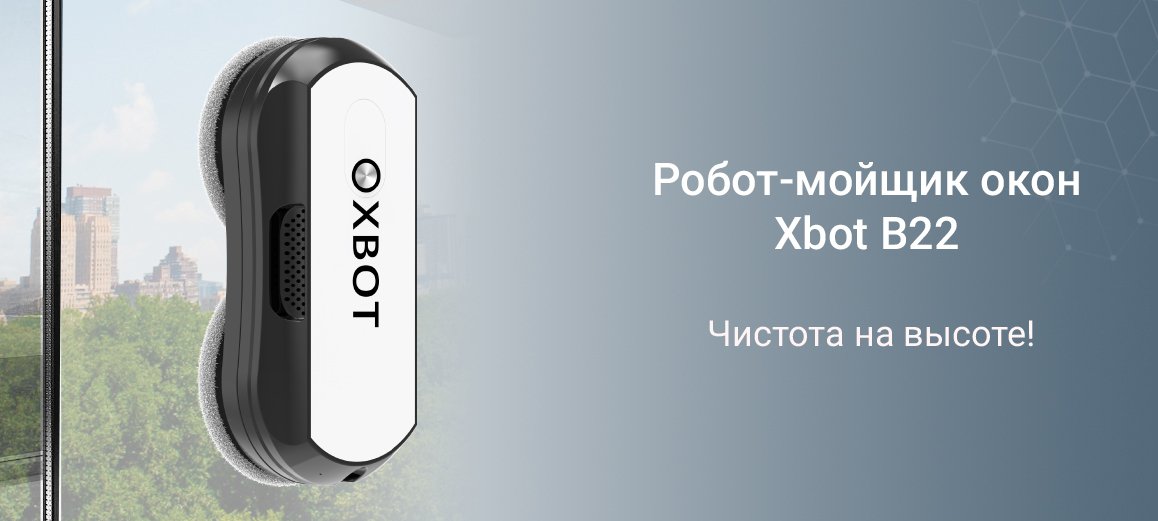 Xbot B22 выполнен в компактном корпусе черного цвета с белыми элементами. Устройство выглядит современно и аккуратно, а продуманная конструкция помогает ему уверенно удерживаться на стеклянной поверхности во время уборки.