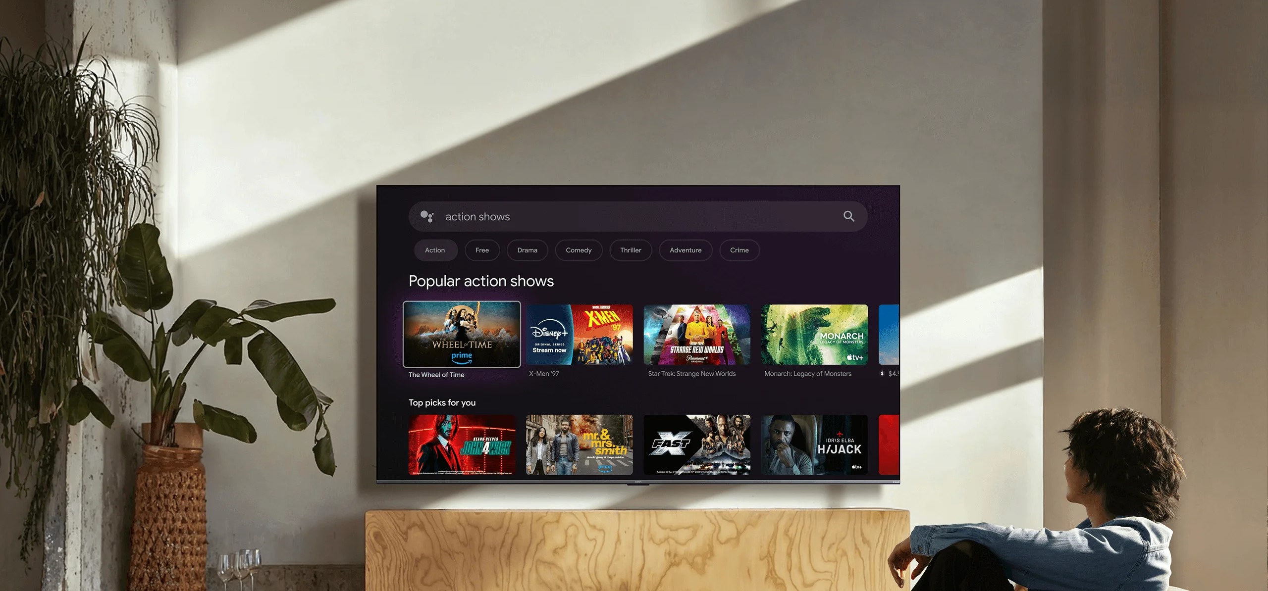 Телевизор работает на платформе Android TV с актуальной версией Android 14, что открывает доступ к огромному количеству приложений и стриминговых сервисов. Поддержка HDR-контента и режим Filmmaker позволяют наслаждаться фильмами с максимально точной цветопередачей и оригинальными настройками изображения.