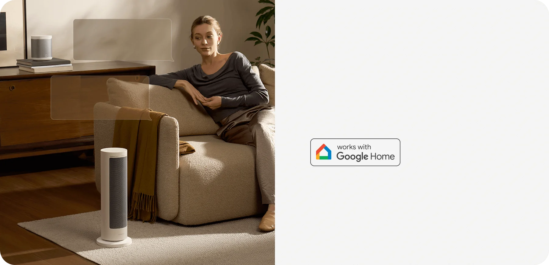 Совместимость с Google Assistant позволяет включать и выключать обогреватель с помощью голосовых команд.